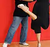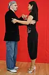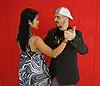 Pareja tomadaPractice embraceBoth holding arms in practice position.