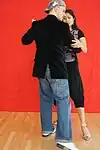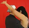 Pareja tomadaPractice embraceShe holds his arms in practice position.