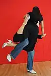 Volcada (suspended)Off-axis move in which the woman leans forward and her legs are opened and extended.