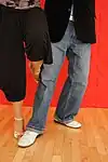 Position-related concepts of Argentine tango are axis and off-axis positions. Body position in which legs are approximately perpendicular to the floor is called 'axis' and there are two axis positions associated with one of two legs.[7] Off-axis positions are called apile (apilado, carpa, volcada) or colgada.[8] The center of balance moves outside one's body in case of the off-axis moves.