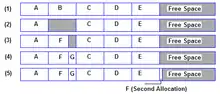 File system fragmentation occurs when unused space or single files are not contiguous. As a file system is used, files are created, modified and deleted. When a file is created, the file system allocates space for the data. Some file systems permit or require specifying an initial space allocation and subsequent incremental allocations as the file grows. As files are deleted, the space they were allocated eventually is considered available for use by other files. This creates alternating used and unused areas of various sizes. This is free space fragmentation. When a file is created and there is not an area of contiguous space available for its initial allocation, the space must be assigned in fragments. When a file is modified such that it becomes larger, it may exceed the space initially allocated to it, another allocation must be assigned elsewhere and the file becomes fragmented.[11]