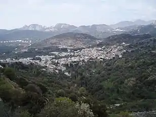 Filoti (in Greek: Φιλώτι or Φιλότι; officially: Φιλότιον) is a semi-mountainous village of central Naxos, Greece, with a population of 1,477 residents (census 2011[2]), located at the foot of Mt. Zas (1,004 m), at an altitude of 400 meters, about 18.2 kilometres (11.3 mi) from the city of Naxos.[3][4] It is located on the slopes of two hills and consists of three settlements, Rachidi, Klefaros and Lioiri.[4] Its stand out is the Orthodox church of Panagia Filotitissa that is dedicated to the Assumption of the Virgin, a basilica built in 1718 in the place of an old Byzantine church.[5][6][7] The economy of the village is mainly based on livestock products, secondarily in agriculture and tourism. It has a Primary School (since 1838), a Professional High School, a Multipurpose Regional Doctor, a Citizen Service Center (KEP), a Post office, a dentist and a pharmacy.