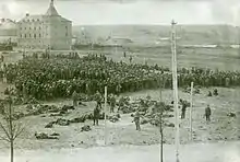 Around 80,000 captured Red Guards and their families, including 4,700 women and 1,500 children, were held in prisoner of war camps across Finland.[1][2][3] They were composed of 13 main camps and more than 60 smaller sub-camps operated by the White Army during the summer of 1918. Conditions were very poor and camps suffered from high mortality rates – a total of 12,000 to 14,000 prisoners died in captivity due to malnutrition, disease and execution. The Finnish government took control of the camps in September with most prisoners being released by late 1918 and the camps were officially closed in 1921. The camps affected the minds of many Finnish people much more deeply than the war itself and influenced post-war politics in Finland.[1] Conditions at the camps were totally ignored for decades by the White interpretation of the history of the Civil War, with the Finnish government paying reparations to former prisoners in 1973.[4]