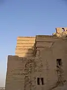 Another feature of the complex are the remains of a tower-like circular building on the very top of the same hill. This structure, which was once at least twenty meters high, is known by the local populace as the Burj-i Gurban, or Burj-i Kurban,[6] "Tower of Sacrifice," and appears to have been a military watch-tower with a flare that could be lit to warn of an approaching enemy (i.e. a beacon).[5]