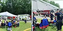 Firefighter rehabilitation is a vital firefighting service, providing firefighters and other emergency personnel with immediate medical attention including rehydration, treatment for smoke inhalation, and the prevention of life-threatening conditions such as heatstroke and heart attack[1] after working at the scene of an incident.[2] Firefighter rehabilitation can include a variety of things from a simple check up to deciding whether or not the firefighter needs to see a doctor. The rehabilitation area is set up in a safe location near the incident so that it can be accessible to any emergency responders who may need it.