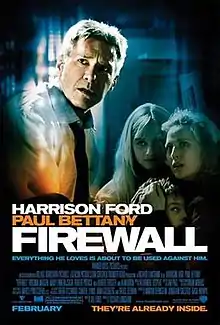 Firewall is a 2006 American action thriller film[4] directed by Richard Loncraine and written by Joe Forte.[5] The film stars Harrison Ford as a banker who is forced by criminals, led by Paul Bettany, to help them steal $100 million, with Virginia Madsen, Mary Lynn Rajskub, Robert Patrick, Robert Forster, and Alan Arkin. It was initially titled The Wrong Element and was going to be directed by Mark Pellington, but he left production in August 2004 after the death of his wife. Loncraine replaced him two months later.[6][7]
