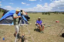There are two primary components of a FPV setup: the airborne component and the ground component (typically called a ground station). A basic FPV system consists of a camera and an analogue video transmitter on the aircraft with a video receiver and a display on the ground. More advanced setups commonly add in specialized hardware, including on-screen displays with GPS navigation and flight data, stabilization systems, and autopilot devices with "return to home" capability—allowing the aircraft to fly back to its starting point autonomously in the event of a signal loss. Another common feature is the addition of pan and tilt capability to the camera, provided by servos. This, when coupled with video goggles and "head tracking" devices creates a truly immersive, first-person experience, as if the pilot was actually sitting in the cockpit of the RC aircraft.[4] Receiving equipment—commonly referred to as the "Ground Station"—generally consists of an analog video receiver (matching the frequency of the transmitter on board the aircraft) and a viewing device. More complex Ground Stations often include a means to record the received image along with more sophisticated antennas for achieving greater range and clarity.