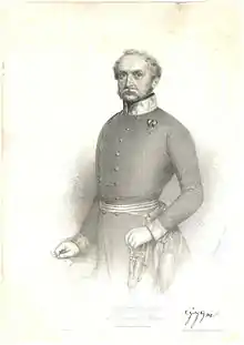 With the victory at Vác, the Hungarian army opened the way towards the Garam river.[30] After the battle the imperial command in Pest continued to believe that the main Hungarian forces were still before the capital.[30] This was because only one corps participated in the Battle of Vác, which made Windisch-Grätz think that the rest of the Hungarian army had not yet arrived in Pest.[32] When he finally seemed to grasp what was really happening, he wanted to make a powerful attack on 14 April against the Hungarians at Pest, and then cross the Danube at Esztergom, cutting off the army which was marching towards Komárom. But his corps commanders, General Franz Schlik and Lieutenant Field Marshal Josip Jelačić, refused to obey, so his plan, which could have caused serious problems to the Hungarian armies, was not realized.[33] To hold back the Hungarian advance to the west towards Komárom, Windisch-Grätz, sent an order to Lieutenant General Ludwig von Wohlgemuth to stop them with the reserve corps formed from imperial troops from Vienna, Styria, Bohemia and Moravia. These troops would suffer a heavy defeat on 19 April by the Hungarian army in the Battle of Nagysalló, and with that the Hungarians opened the way to besieged Komárom.[34] But when these events took palace, Windisch-Grätz was no longer in Hungary, because in the meanwhile, on 12 April he was relieved of his command of the imperial troops in Hungary by the emperor Franz Joseph I of Austria. Feldzeugmeister Ludwig von Welden was appointed in his place.[34]