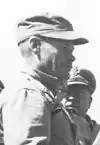 The 1st Marines next battle was its bloodiest yet – the Battle of Peleliu. The regiment landed on September 15, 1944, as part of the 1st Marine Division's assault on the island. The division's commanding general, Major General William H. Rupertus had predicted the fighting would be, "...tough but short. It'll be over in three of four days – a fight like Tarawa. Rough but fast. Then we can go back to a rest area.".[10]During the Battle of Peleliu, the regiment was decimated by heavy artillery and accurate small arms fire in the vicinity of Bloody Nose Ridge. Repeated frontal assaults with fixed bayonets failed to unseat the Japanese defenders from the 14th Division (Imperial Japanese Army).[11] The 1st Marines fought on Peleliu for 10 days before being pulled off the lines after suffering 58% casualties and no longer being combat effective.[12] Ten days of fighting on Peleliu cost the 1st Marine Regiment 1,749 casualties.[13]