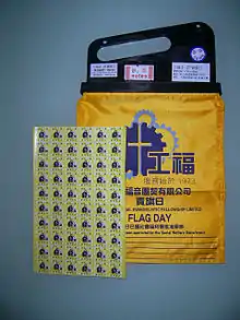 A flag day (Chinese: 賣旗日) in Hong Kong is a day on which public fundraising of charities takes place. Organised public fundraising in Hong Kong must be government-approved. Historically, it had been held only on a Saturday. It is currently, however, organised on Wednesdays and Saturdays. Flag-selling (賣旗) hours are from 7:00 in the morning to 12:30 in the afternoon on a flag day.[1]