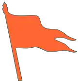 The bhagwa dhwaj (Marathi: भगवा ध्वज, romanized: bhagvā dhvaj, lit. 'saffron flag') is a saffron-colour flag used primarily in Hinduism.[1] It can be triangular, rectangular, or featuring a double pennant, often with tassels. It can also be adorned with Hindu religious symbols, such as the Om letter or a Hindu swastika.