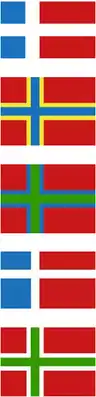 The former flag of Orkney was adopted in 1995. In 2001, the flag of Orkney, the traditional flag of St Magnus, was declined official recognition by the Lord Lyon, the heraldic authority of Scotland, due to similarity with other national flags;[5] as well as the flag of the Kalmar Union.[6]