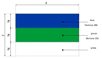 | Design | A horizontal tricolor of blue, green, and white. |