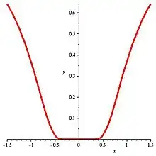 is flat at . Thus, this is an example of a non-analytic smooth function. The pathological nature of this example is partially illuminated by the fact that its extension to the complex numbers is, in fact, not differentiable.