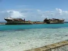 The Medina class were a development of the flat-iron concept which resulted in an iron coastal gunboat fitted with three masts and carrying three 6.3-inch 64-pounder rifled muzzle-loading guns. Naval historian Antony Preston described them as "the most grotesque craft ever seen".[26] The hull of Medway remains visible on satellite imagery at 32°22′32.7″N 64°41′13″W / 32.375750°N 64.68694°W.[27]