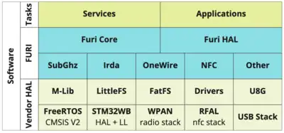 - FuriCore – provides an API for interaction with the scheduler and multithreading. FuriCore abstracts and extends the functionality of the FreeRTOS scheduler and adds additional system primitives.