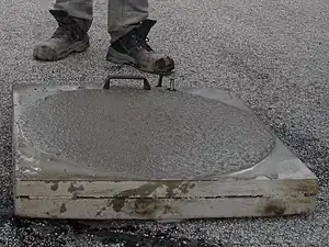 The flow table test or slump-flow test is a method to determine consistency of fresh concrete. Flow table test is also used to identify transportable moisture limit of solid bulk cargoes.[1] It is used primarily for assessing concrete that is too fluid (workable) to be measured using the slump test, because the concrete will not retain its shape when the cone is removed.
