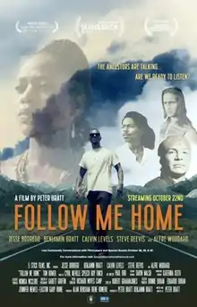 Follow Me Home is a 1996 film directed by activist and filmmaker Peter Bratt. It explores spiritual and intercultural race relations through the lives of four artists, one African American, one Native American, and two Latin-American cousins, who embark on a cross-country road trip to paint a mural on the White House. Along the way, they meet a mysterious African American woman bearing a deep secret.[1]