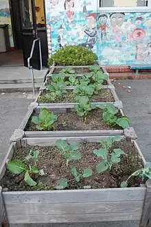 Urban agriculture (UA) is another way that helps when it comes to having access to fresh food in urban cities. Urban agriculture is one of the responses combating the lack of fresh foods in communities that need fresh foods. There are communities that are turning vacant lots into a community gardens and urban areas in which they can use agriculture to grow fresh foods for the community.[55] Urban agriculture has many benefits such as being a "local source of fresh healthy food", and bringing communities together and reducing environmental problems.[55] An issue with urban agriculture is that in many food desert communities, the soil has been contaminated from local pollutants, which makes it harder to use plots of land as a garden to grow fresh food.[56] For example, in Oakland, California, there has been a rise in using urban agriculture as a means to get areas that are in the middle of food deserts to grow and produce their own food.[57]
