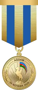 The For the Liberation of Aghdam Medal (Azerbaijani: «Ağdamın azad olunmasına görə» medalı) is a medal of Azerbaijan. The medal was created on the occasion of Azerbaijan being the victor in the Second Nagorno-Karabakh War.[1]
