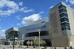 The Ford Center is a multi-use indoor arena in downtown Evansville, Indiana with a maximum seating capacity of 11,000.[4] It officially opened in November 2011 and is mainly used for basketball, ice hockey, and music concerts. It is home to the Evansville Thunderbolts minor league hockey team in the SPHL and the Evansville Purple Aces men's basketball team, representing the University of Evansville. The UE women's basketball team also played at Ford Center from the venue's opening, but moved its home games back to its campus starting with the 2017–18 season.