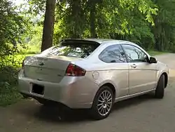 The restyled North American second generation Ford Focus was sold by Ford as either a two-door coupe and 4-door sedan — the hatchbacks and wagon were discontinued.