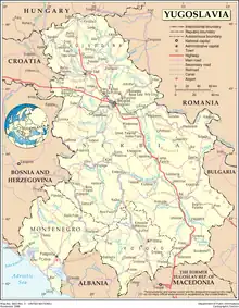 Unwilling to accept the interpretation that it is a new state that shares succession with other former SFR Yugoslav republics, FR Yugoslavia rejected to reapply for membership in international organizations leading the country to international isolation and it sometimes being described as a pariah state all up until the overthrow of Slobodan Milošević in 2000.[3] International status of the country improved somewhat following the 1995 Dayton Peace Agreement which ended Bosnian War and 1995 Erdut Agreement which opened the space for mutual recognition and establishment of full diplomatic relations with Croatia in 1996.[4] This improvement was nevertheless not long lasting with the beginning of Kosovo War and 1999 NATO bombing campaign.