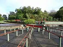 Minogue Park was first bought by Hamilton City Council in 1959, then extended in 1964, 1973 (Waterworld, dog exercise area, luge track and Hamilton Model Engineers Club), 1975 Rotokaeo Lake, 1979 (netball courts, BMX track and car park, and end of Walsh Street, 1992 NZR land west of Rotokaeo and in 2008. In September 1979 it was named after a former Mayor, Mike Minogue. In 2004 it was classified as a reserve under the Reserves Act (1977). There was a speedway until 1979, now this has been replaced by Minogue Park netball courts, a destination playground and a BMX track.[4] The Model Engineers Club moved to the park in 1983[15] and now has 1.6 km (0.99 mi) of miniature railway track,[16] a 1953 diesel shunter and the former Frankton signalbox.[17] The playground was modernised in 2015.[18] A cycleway is planned to link the playground with Nawton.[19]