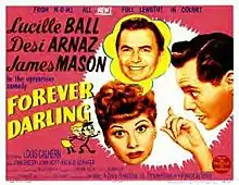 Forever, Darling is a 1956 American fantasy romantic comedy film directed by Alexander Hall, written by Helen Deutsch, and starring Lucille Ball, Desi Arnaz, and James Mason.[2] In the film, Ball stars as a wife who tries to save her struggling marriage to a chemical engineer (Arnaz) with the help of her guardian angel (Mason). Louis Calhern and Natalie Schafer co-star in supporting roles.