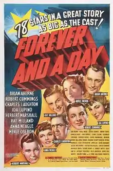 Forever and a Day is a 1943 American drama film, a collaborative effort employing seven directors/producers and 22 writers, with an enormous cast of well-known stars.