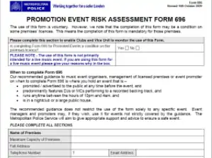 David Isles, Detective Superintendent of the Metropolitan Police Clubs and Vice unit has stated that Form 696 is not designed to stop people having a good time.[11] The Metropolitan Police web site describes the form as a Promotion Event risk assessment form.[12]
