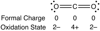 The formal charge is a tool for estimating the distribution of electric charge within a molecule.[1][2] The concept of oxidation states constitutes a competing method to assess the distribution of electrons in molecules. If the formal charges and oxidation states of the atoms in carbon dioxide are compared, the following values are arrived at: