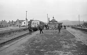 On 1 July 1903 a short branch from Fraserburgh to St Combs was opened.[24] Its purpose was to serve the small ports of Inverallochy and St Combs, but more particularly the luxury resort hotel and golf course planned by the GNoSR at Cruden Bay. The hotel and the entire branch line was a financial failure, and the passenger service on the line was discontinued from 31 October 1932. The hotel continued in use until 1940 when it was requisitioned by the military; after World War II it never re-opened, and was demolished. The good service on the line was terminated on 31 October 1948.[21]