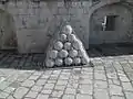 Lovrijenac has a triangular shape with three terraces. The thickness of the walls facing the outside reach 12 metres (39 ft) whereas the section of the walls facing the inside, the actual city, are only 60 centimetres (24 in) thick.[3] Two drawbridges lead to the fort and above the gate, there is an inscription Non Bene Pro Toto Libertas Venditur Auro (It is not good that liberty is sold for gold).[3]