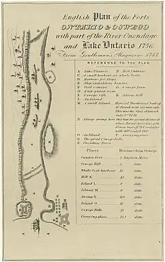 - ↑ "English Plan of the Forts Ontario & Oswego with part of the River Onondago and Lake Ontario 1756. From Gentleman's Magazine 1757 - Barry Lawrence Ruderman Antique Maps Inc". Barry Lawrence Ruderman. Retrieved 21 November 2022.