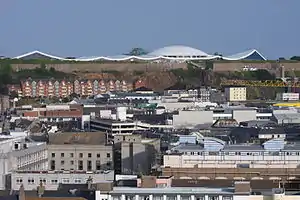 Fort Regent is a 19th-century fortification and leisure centre on Mont de la Ville (Town Hill), in St. Helier, Jersey.[1][2] The fort is in close proximity to the fortified South Hill Engineers Barracks at La Collette and overlooks the 16th-century Elizabeth Castle and harbour to the west.