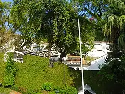 Over the years the fort was gradually demolished for road construction and from 1976 onwards it was no longer used by the Maritime Police.[4] The Tourism Department of the Government of Macau restored it and reclassified it as a guesthouse, the "Pousada de São Tiago", inaugurated in 1981,[5] today one of Macau's main attractions. Visitors can visit the chapel inside, where the image of the Virgin and patron-saint São Tiago stand out. A popular folk story is associated with the statue of São Tiago, as it is said that it would leave at night to patrol, being found in its place with muddy boots by morning.[3][4]