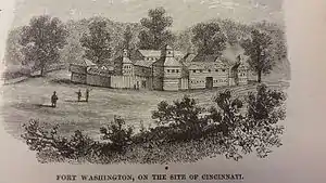 When Judge John Cleves Symmes contracted with the Continental Congress to purchase 1,000,000 acres in southwestern Ohio known as the Symmes Purchase in 1788,[2] it reserved 15 acres to the federal government for a fort.[3] In summer 1789, Fort Washington was built to protect early settlements located in the Symmes Purchase area, including Losantiville, Columbia and Northbend.