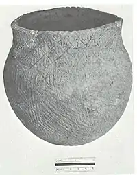There was also a fair amount of Early Woodland Marion thick ware present; representing a possible occupation prior to the Wayne and Western Basin traditions, or indicating Early Woodland roots for either (or both) of the Late Woodland traditions.[1][6]
