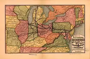 The Pittsburgh, Fort Wayne and Chicago Railway was a major part of the Pennsylvania Railroad system, extending the PRR west from Pittsburgh, Pennsylvania, via Fort Wayne, Indiana, to Chicago, Illinois. It included the current Norfolk Southern-owned Fort Wayne Line east of Crestline, Ohio, to Pittsburgh, and the Fort Wayne Secondary, owned by CSX, from Crestline west to Tolleston in Gary, Indiana. CSX leased its entire portion in 2004 to the Chicago, Fort Wayne and Eastern Railroad (CFE). The remaining portion of the line from Tolleston into Chicago is now part of the Norfolk Southern's Chicago District, with a small portion of the original PFW&C trackage abandoned in favor of the parallel lines of former competitors which are now part of the modern NS system.