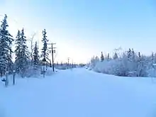 Summer temperatures are exceptionally high for such a northerly area, being far warmer than the tree line threshold. The highest temperature ever recorded in Alaska occurred in Fort Yukon on June 27, 1915, when it reached 100 °F (37.8 °C).[10][11] This was also the highest temperature recorded north of the Arctic Circle until June 20, 2020, when it was finally exceeded by a 38 °C (100.4 °F) reading at Verkhoyansk,[12][13] a location similarly known for its extremely continental climate.