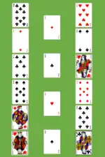 First, the four aces are removed from the deck and placed in a row to form the bases of the foundations. These foundations are built up by suit to kings.
