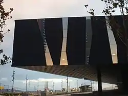 It was the symbol of the controversial 2004 Universal Forum of Cultures and the serious flaws that arose during its construction were widely covered in both the Spanish national and foreign press.[1] The building has become a political bone of contention, with the opposition parties in both Barcelona Council and the Parliament of Catalonia demanding to know why it cost so much (of the order of US $144 m).