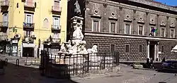 The Fountain of Monteoliveto (Fontana di Monteoliveto) is a late-Baroque monumental fountain in central Naples, Italy. It is also called the Fountain of Charles II or of the Small King (del Re Piccolo). 40°50′43″N 14°15′03″E / 40.845400°N 14.250830°E
