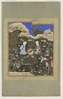 Persian miniature depicting Khidr and Alexander watching the Water of Life revive a salted fish