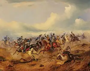 Friedrich l'Allemandː Fight between the Hussars and Uhlans at Ács at 3 August 1849