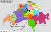 La Harpe was a republican idealist, seeing the rule of the Bernese administration as oligarchical, and as an infringement on the natural rights of the people of Vaud and the other subject states, such as Fribourg.[4][5] La Harpe viewed the rule of the culturally dissimilar Bernese government and aristocracy as uncaring for the popular will, and contrary to the historical sovereignty of Vaud, in the tradition of the Swiss people.[5] Because of this, La Harpe attempted to achieve a return to the "Old Regime" of the Swiss, and to create a system wherein local governance was centralized in a representative structure, rather than the existing system of subject states within the region; this proposed system, he believed, would preserve the natural rights and freedom of citizens.[5]