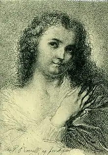 Frédérique Émilie Auguste O'Connell, whose name at birth was Emilie Friederike Auguste Miethe, was born in Potsdam on 28 March 1822[1] and died in Paris in 1885. A German painter and portraitist, her work was in vogue among the Parisian social set of the Second Empire.[2] Her works of engraving, rare and limited in number, were prized by the critics of the era. Nonetheless, she died forgotten as an artist.