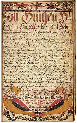 ![]() An ornate Taufschein, or baptismal certificate | |