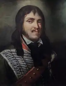 In July 1792, Marceau was appointed captain of the Revolutionary Army's 2nd Battalion of Volunteers of Eure-et-Loir.[1] He took part in the defence of Verdun later in the year, and it was his troop that was ordered to bear the proposals of capitulation to the Prussian camp. The defenders' lack of morale provoked the anger of the revolutionary authorities, and Marceau was fortunate to find re-employment as a captain in the regular service. However, early in 1793, he along with other officers under suspicion was arrested and imprisoned for a period.[3]